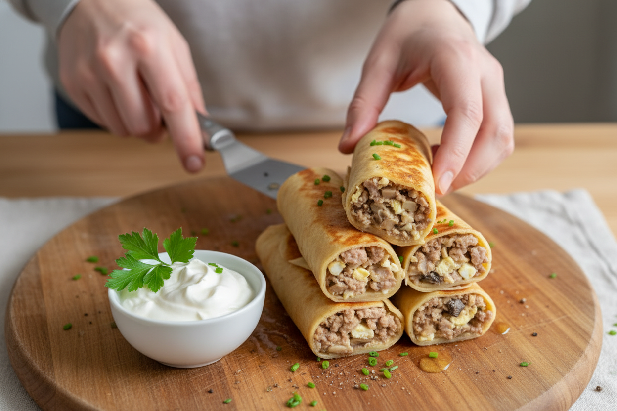Savory Meat and Mushroom Crepes Recipe